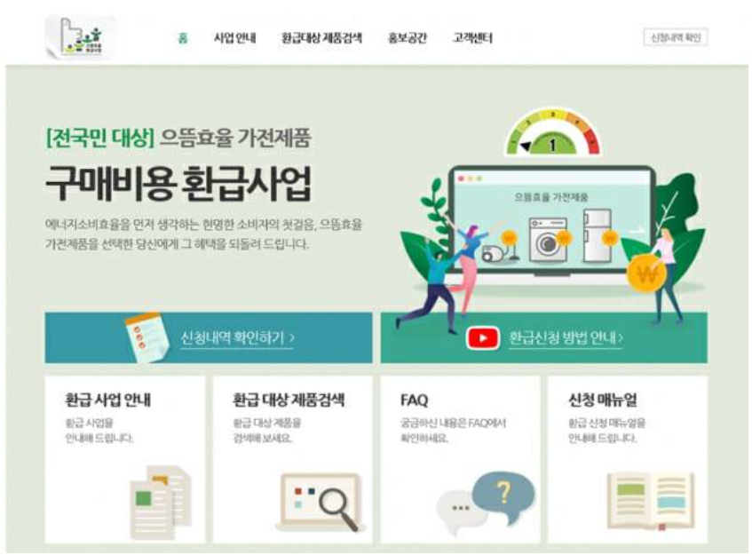 환급 홈페이지 접속 (으뜸효율 가전제품 환급사업 공식 홈페이지)