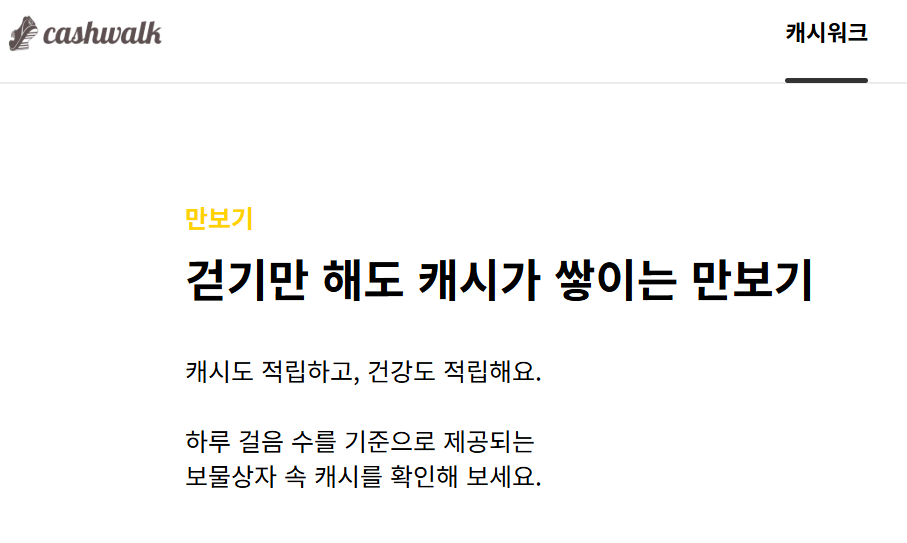 특징: 가장 대중적인 걷기 앱 중 하나로, 기본 걸음 수(1만 보 이하)에 따라 코인을 적립할 수 있고 이를 현금성 리워드로 전환 가능