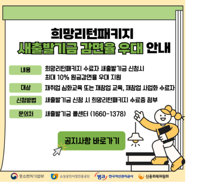 📞 희망리턴패키지 통합상담전화: 1357 (중소기업 통합 콜센터)