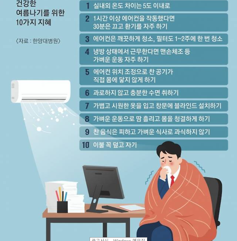 다음은 냉방병 예방을 위한 건강한 에어컨 사용 팁입니다.