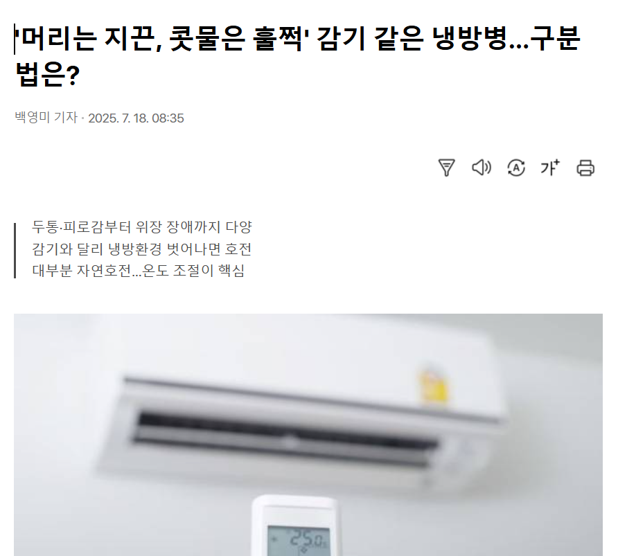 일종의 환경성 질환으로, 감기와 비슷하지만 일반적인 바이러스 감기와는 달리 냉기로 인한 체온 불균형이 주된 원인입니다.